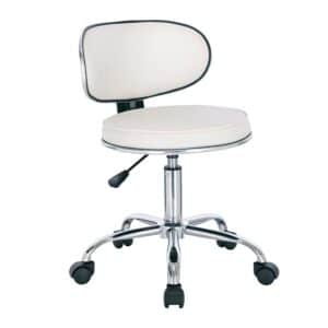 GLORY Σκαμπό με Πλάτη, Χρώμιο PU Άσπρο, Τροχήλατο, Ρύθμιση Ύψους, Περιστρεφόμενο 51x51x67/78cm