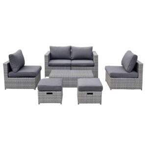 BALI Set Wicker 6 θέσεων: 1 Τραπέζι+1 Καναπέ 2θ+2 Σκαμπό +2 καθίσματα 1θ, Απόχρωση Γκρι Table:100x50x30cm Set 6 Seats