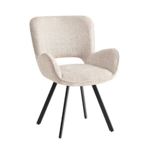 VETA Πολυθρόνα Περιστρεφόμενη, Μέταλλο Βαφή Μαύρο, Ύφασμα Μπεζ 58x58x84cm