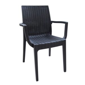 VALERIA Πολυθρόνα Τραπεζαρίας Κήπου Στοιβαζόμενη, PP Απόχρωση Ανθρακί (Rattan Look) 57x64x89cm