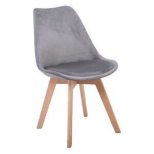 MARTIN Καρέκλα Οξιά Φυσικό, Ύφασμα Velure Γκρι, Μονταρισμένη Ταπετσαρία 49x57x82cm
