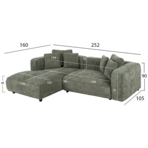 ΚΑΝΑΠΕΣ ΓΩΝΙΑ (ΑΡΙΣΤΕΡΗ) 3-ΘΕΣΙΟΣ GRACE HM3280.05L ΠΡΑΣΙΝΟ ΥΦΑΣΜΑ 252x160x70-90Υεκ