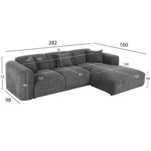 ΚΑΝΑΠΕΣ ΓΩΝΙΑ (ΑΡΙΣΤΕΡΗ) BRICKEN HM3275.04L ΑΝΘΡΑΚΙ ΥΦΑΣΜΑ 110-282×98-160×72Υεκ.