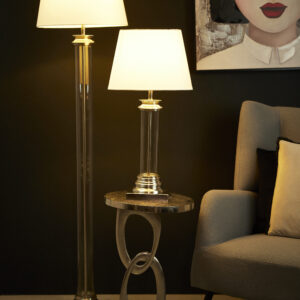 SKYLER ΦΩΤΙΣΤΙΚΟ ΕΠΙΤΡΑΠΕΖΙΟ 37x37x62cm ΑΛΟΥΜΙΝΙΟ ΑΣΗΜΙ ΓΥΑΛΙ ΛΕΥΚΟ 029209