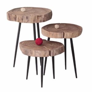 MATRI-W Τραπεζάκι Σαλονιού Καθιστικού, Μέταλλο Βαφή Μαύρο, Ξύλο Ακακία Φυσικό Φ76xH.45cm