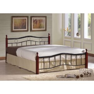 ARAGON Kρεβάτι Ημίδιπλο, για Στρώμα 120x200cm, Μέταλλο Βαφή Μαύρο – Ξύλο Kαρυδί 125x210x76cm