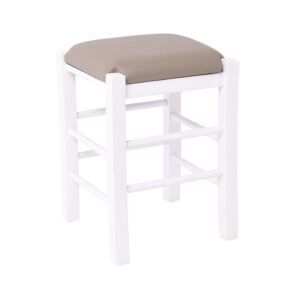 ΤΑΒΕΡΝΑΣ Σκαμπό Βοηθητικό, Οξιά Βαφή Εμποτισμός Λάκα Άσπρο, Κάθισμα Pu Cappuccino 35x35x51cm