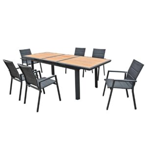 NAPOLI Πολυθρόνα Dining Αλουμίνιο Βαφή Μαύρο Textilene Ανθρακί, Στοιβαζόμενη 59x62x90cm