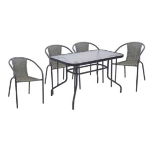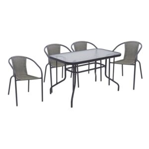 BALENO-W Set Τραπεζαρία Κήπου: Τραπέζι + 4 Πολυθρόνες Μέταλλο Ανθρακί, Wicker Mixed Grey Table:110x60x71 Seat:52x60x72