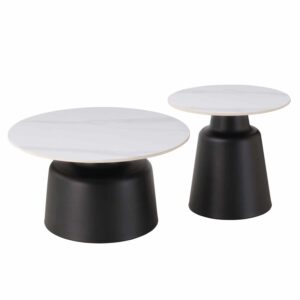 ΤΡΑΠΕΖΙΑ ΣΑΛΟΝΙΟΥ RINKON HM18263.01 ΚΕΡΑΜΙΚΑ TOP ΟΨΗ ΛΕΥΚΟΥ ΜΑΡΜΑΡΟΥ Φ50εκ & Φ70εκ
