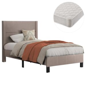 ΚΡΕΒΑΤΙ ΜΟΝΟ & ΣΤΡΩΜΑ TRILLOP HM21203.15 ΜΠΕΖ ΥΦΑΣΜΑ–ΓΙΑ 120×200εκ