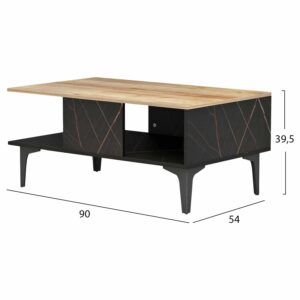 ΤΡΑΠΕΖΙ ΣΑΛΟΝΙΟΥ ΜΕ ΡΑΦΙ GUNNEZ HM9036.12 ΜΑΥΡΟ ΜΑΡΜΑΡΟ & ΟAK 90x54x39,5Υεκ.