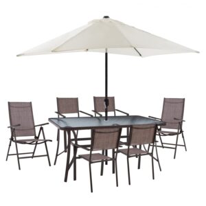 ΣΕΤ ΤΡΑΠΕΖΑΡΙΑ ΤΡΑΠΕΖΙ ΜΕ ΟΜΠΡΕΛΑ ΜΟΚΑ & ΠΟΛΥΘΡΟΝΕΣ 7ΘΕΣΕΩΝ & TEXTILINE ΚΑΦΕ HM11493
