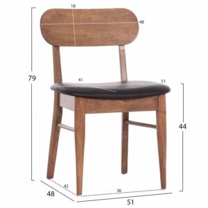 KΑΡΕΚΛΑ ΤΡΑΠΕΖΑΡΙΑΣ SEKOR HM9945.01 RUBBERWOOD-ΜΑΥΡΟ PU 50x50x80Υεκ.