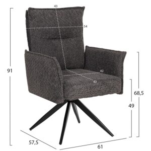 ΚΑΡΕΚΛΑ ΤΡΑΠΕΖΑΡΙΑΣ BELLISI HM18248.02 ΕΚΡΟΥ ΥΦΑΣΜΑ-PLYWOOD ΣΕ ΜΑΥΡΟ 53x56x78Υεκ.