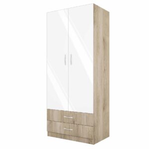 Ντουλάπα Δίφυλλη με 2 Εξωτερικά Συρτάρια, Σόνομα Λευκό, 1211008 , 52x191x80, Genomax