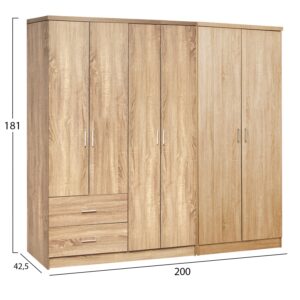 Ντουλάπα Δίφυλλη με 2 Εξωτερικά Συρτάρια, Σόνομα, 1211008 , 52x191x80, Genomax
