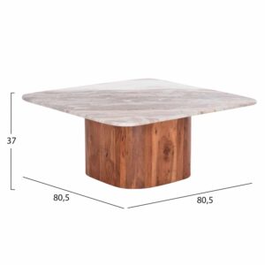 ΤΡΑΠΕΖΙ ΣΑΛΟΝΙΟΥ ΤΕΤΡΑΓΩΝΟ VOLTI HM18001 ΓΚΡΙ ΜΑΡΜΑΡO-ΞΥΛΟ ΑΚΑΚΙΑΣ 80.5×80.5×37Υεκ.