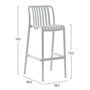 MODA Σκαμπό Bar Στοιβαζόμενο PP – UV Protection, Απόχρωση Άσπρο 38x47x75/102cm