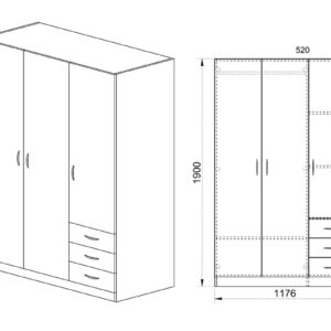 Ντουλάπα Ρούχων S3φ με 2 συρτάρια