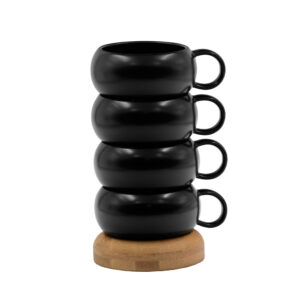 CACTUS ΚΟΥΠΑ ESPRESSO SET 6ΤΜΧ 32x28x7cm ΠΟΡΣΕΛΑΝΗ ΜΑΥΡΟ ΦΥΣΙΚΟ BAMBOO 030023