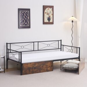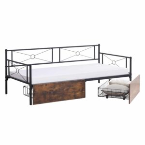 Η αντοχή του κρεβατοκαναπέ είναι αδιαπραγμάτευτη αλλά δεν είναι το μόνο που τραβάει το ενδιαφέρον. Είναι η τέλεια προσθήκη για μικρά υπνοδωμάτια ή γενικά για μικρά σπίτια. Ένα μεταλλικό κρεβάτι, γενικά και συνήθως, έχει ψηλά πόδια αφήνοντας χώρο από κάτω για να τον χρησιμοποιήσετε για αποθήκευση πραγμάτων. Ταυτόχρονα, προσφέρει μεγάλη ευκολία στο καθάρισμα. Τα ξύλινα πόδια εκτός από στιβαρότητα προσφέρουν και μια όμορφη διχρωμία με τον μαύρο μεταλλικό σκελετό. Οι τάβλες στήριξης του στρώματος περιλαμβάνονται στην συσκευασία, και γενικά είναι εύκολο να συναρμολογήσετε τον κρεβατοκαναπέ, και σας προτείνουμε να το κάνετε με 2 άτομα. Πρόκειται για μια ιδανική επιλογή τόσο για το υπνοδωμάτιό σας, όσο και για επαγγελματικούς χώρους, όπως ξενοδοχεία και Airbnb. Και φυσικά ο συνδυασμός ποιότητας και τιμής αυτού του κρεβατοκαναπέ δεν θα σας αφήσει να κοιτάξετε αλλού εάν ψάχνετε για σύνθεση μετάλλου- ξύλου.