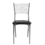 Καρέκλα τραπεζαρίας από σκελετό χρωμίου και επένδυση από δερματίνη σε μαύρο χρώμα.Συνδιάστε την με γυάλινο τραπέζι και φτιάξτε ένα υπέροχο σετ τραπεζαρία για την κουζίνα σας.Η καρέκλα διατίθεται έτοιμη μονταρισμένη.