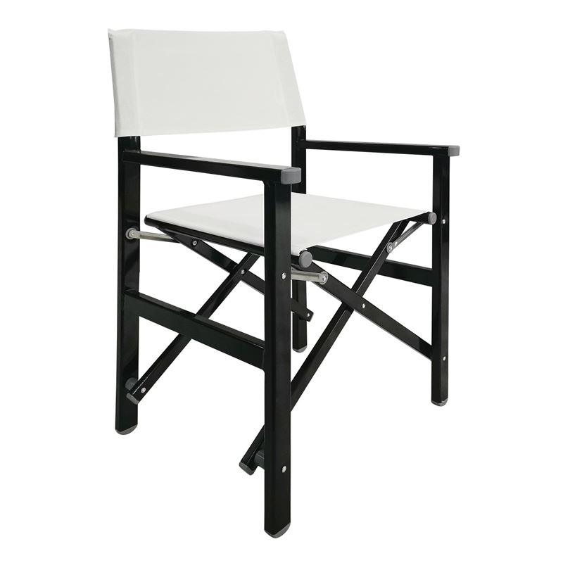 Σκηνοθέτη Πολυθρόνα, Αλουμίνιο Μαύρο (1,2mm), Textilene Άσπρο, Πτυσσόμενη (2,75kg) (Ε-00023609)