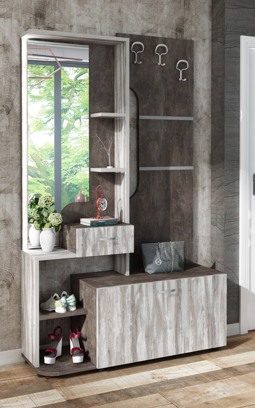 Έπιπλο Εισόδου Bela: Τα πρότυπα και οι τάσεις της επίπλωσης δίνουν στην είσοδο ένα σημαντικό ρόλο στη συνολική εμφάνιση του σπιτιού. Για να είναι ευχάριστη και τακτοποιημένη αυτή η αίθουσα απαιτούνται μερικά βασικά στοιχεία. Είναι απαραίτητο ένα όμορφο και πρακτικό έπιπλο εισόδου. Κάθε πρόσθετη λειτουργικότητα συμβάλλει στην περισσότερη άνεση στην καθημερινή ζωή. Το έπιπλο εισόδου Bela παρέχει τη μέγιστη άνεση και την απόλυτη ομορφιά.