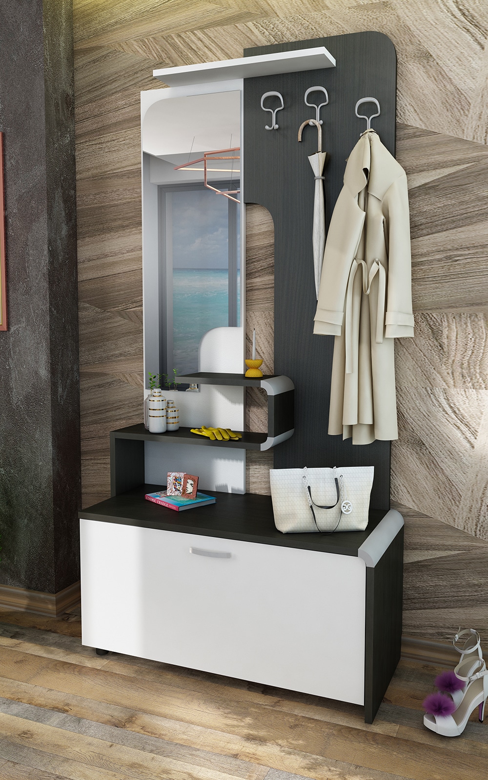 Το έπιπλο εισόδου Kobe με τον ιδανικό του σχεδιασμό του ταιριάζει υπέροχα σε κάθε μορφή επίπλωσης. Συνδυάζει όλα τα απαιτούμενα στοιχεία ενός επίπλου εισόδου: λειτουργικότητα, πρακτικότητα, άνεση και ομορφιά.