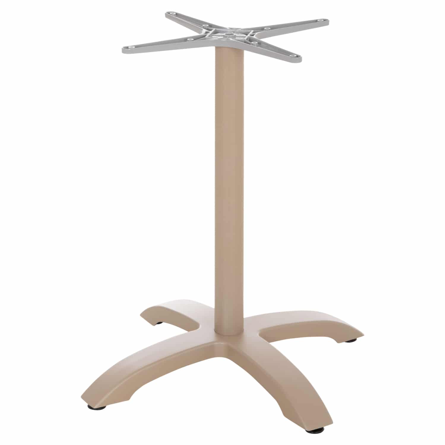 Η ΗΜ460.25 είναι βάση για τραπέζι σε ΚΑΠΟΥΤΣΙΝΟ ΜΑΤ χρώμα. Είναι κατασκευασμένη από αλουμίνιο και στηρίζεται σε μια 4-νυχη βάση. Το καπάκι που θα διαλέξετε στηρίζεται σε έναν «σταυρό», με αποτέλεσμα να μπορεί να δεχθεί τόσο στρογγυλά καπάκια, όσο και τετράγωνα. Επίσης, στο κάτω μέρος της διαθέτει ρυθμιστές ύψους (ρεγουλατόρους). Ιδανική πρόταση για συνδυασμό με επιφάνειες σχεδόν κάθε είδους, όπως βερσαλίτες, HPL, MDF, κτλ.