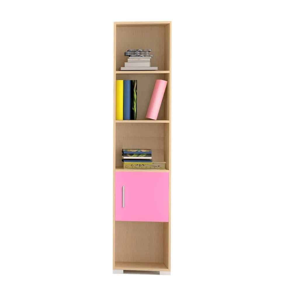 Μονή παιδική βιβλιοθήκη ελληνικής προέλευσης, η οποία περιέχει ένα ντουλάπι με μεταλλικό inox χερούλι και 4 ευρύχωρους χώρους. Κατασκευασμένη από πιστοποιημένη μελαμίνη υψηλής ποιότητας και αντοχής, είναι ιδανική για να οργανώσετε περιορισμένους χώρους.
