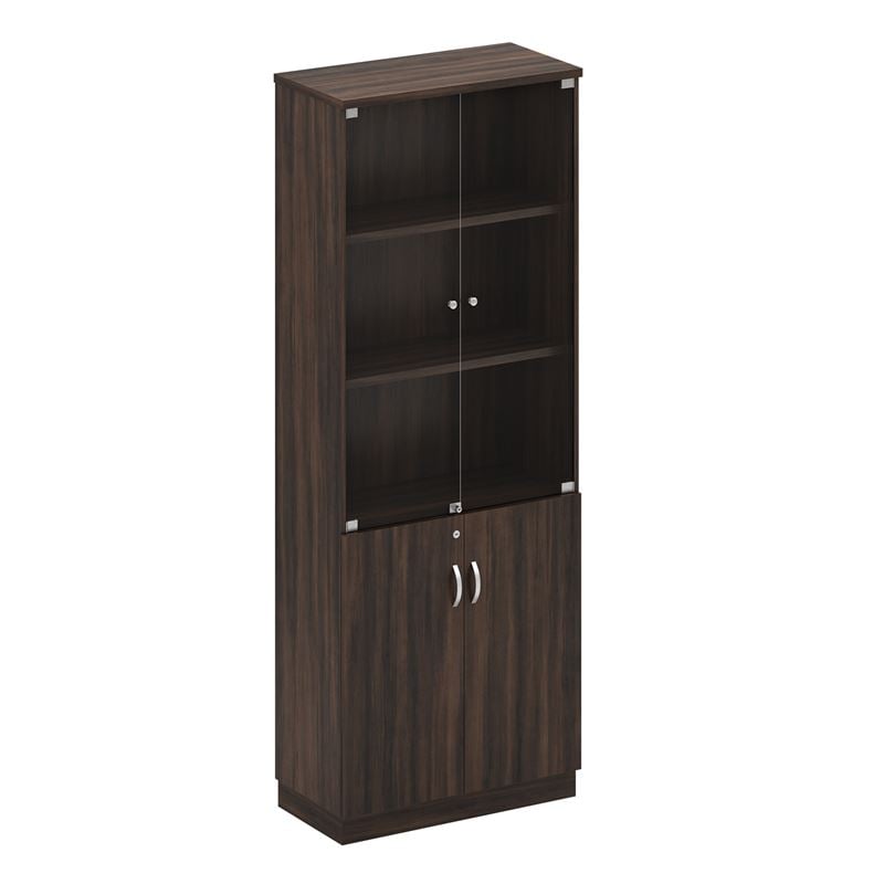 ΒΙΒΛΙΟΘΗΚΗ Γραφείου με Πόρτες Γυάλινες, Ντουλάπι Δίφυλλο Απόχρωση Σκούρο Καρυδί (Ε-00024387)