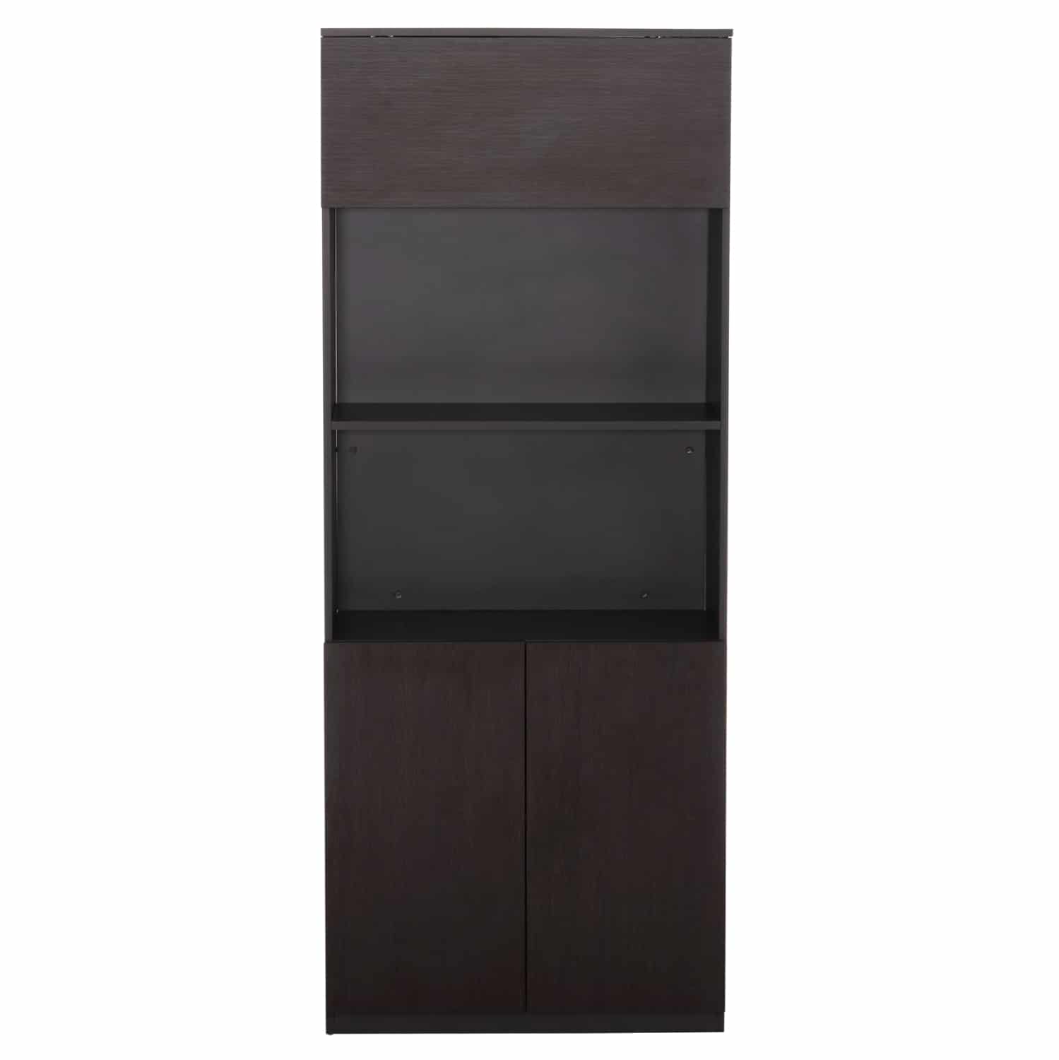 Διαθέτει τρία ντουλάπια με εσωτερικό ράφι, ένα στο επάνω μέρος και δύο στο κάτω και τρεις ανοιχτούς αποθηκευτικούς χώρους.