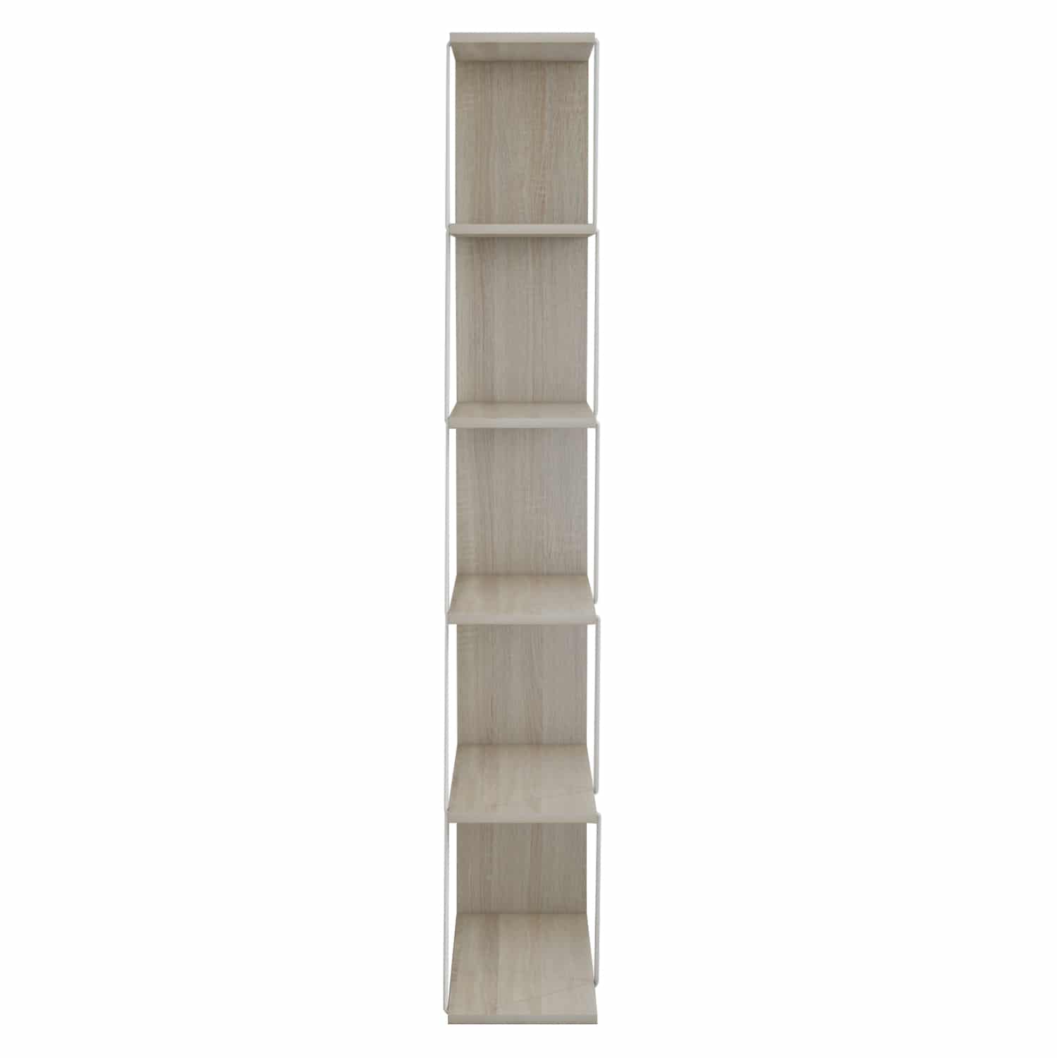 Διαθέτει 4 ράφια τοποθέτησης σε σχήμα σκάλας, τα οποία στηρίζονται μεταξύ τους με μεταλλικές ράβδους σύν ένα ράφι που είναι η κάτω επιφάνεια της βιβλιοθήκης, ενώ οι διαστάσεις της την καθιστούν βολική για πολλούς χώρους.