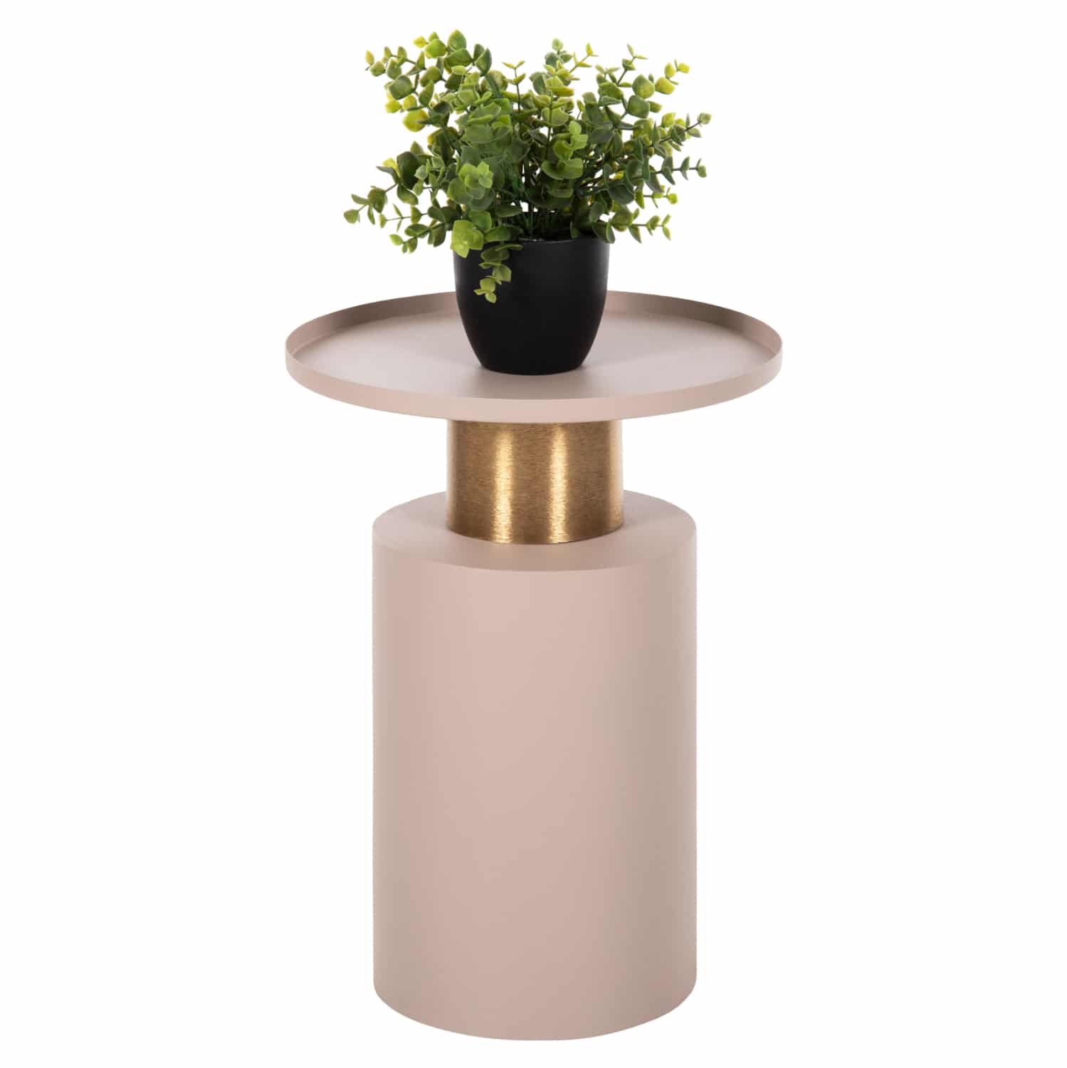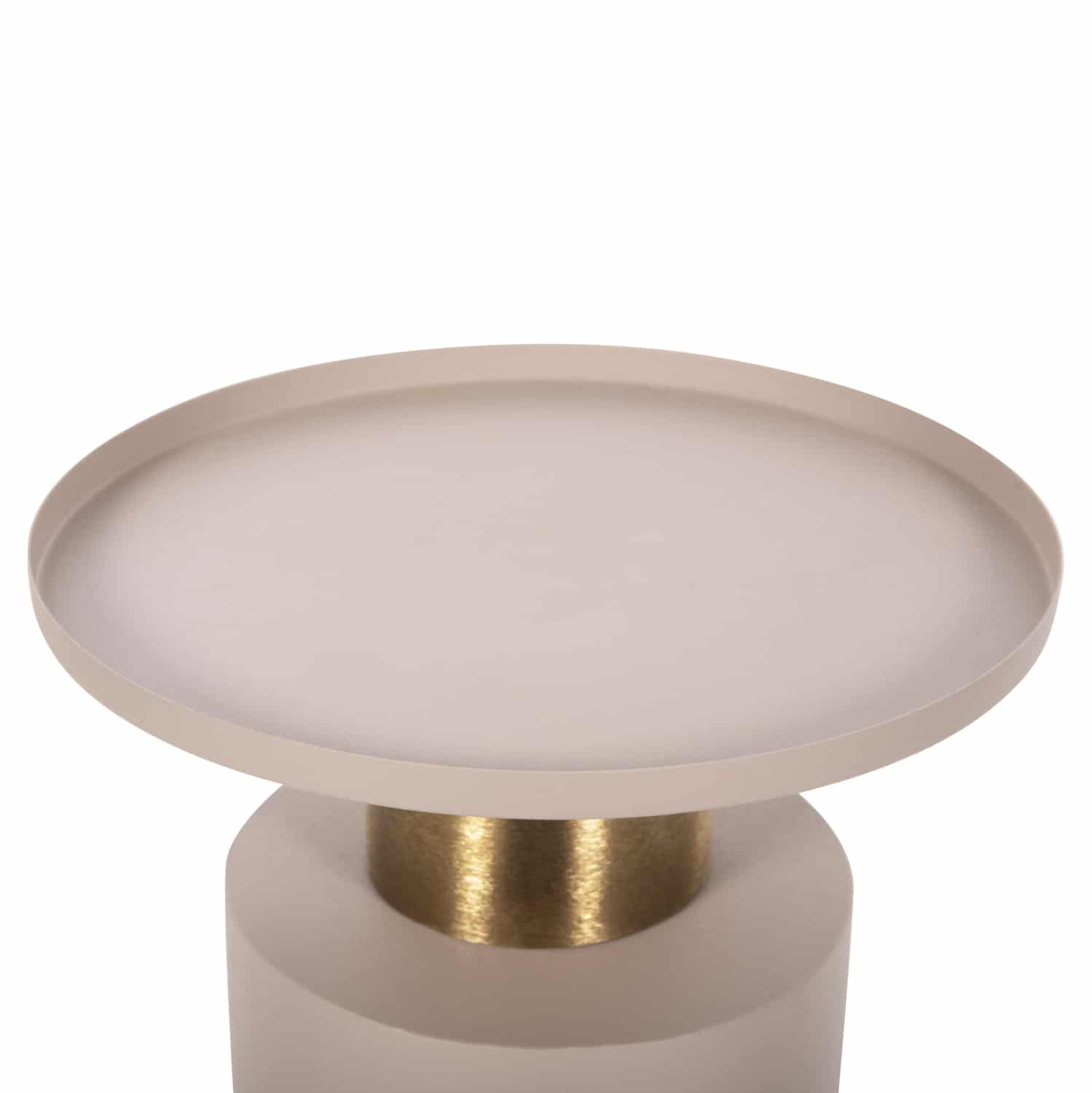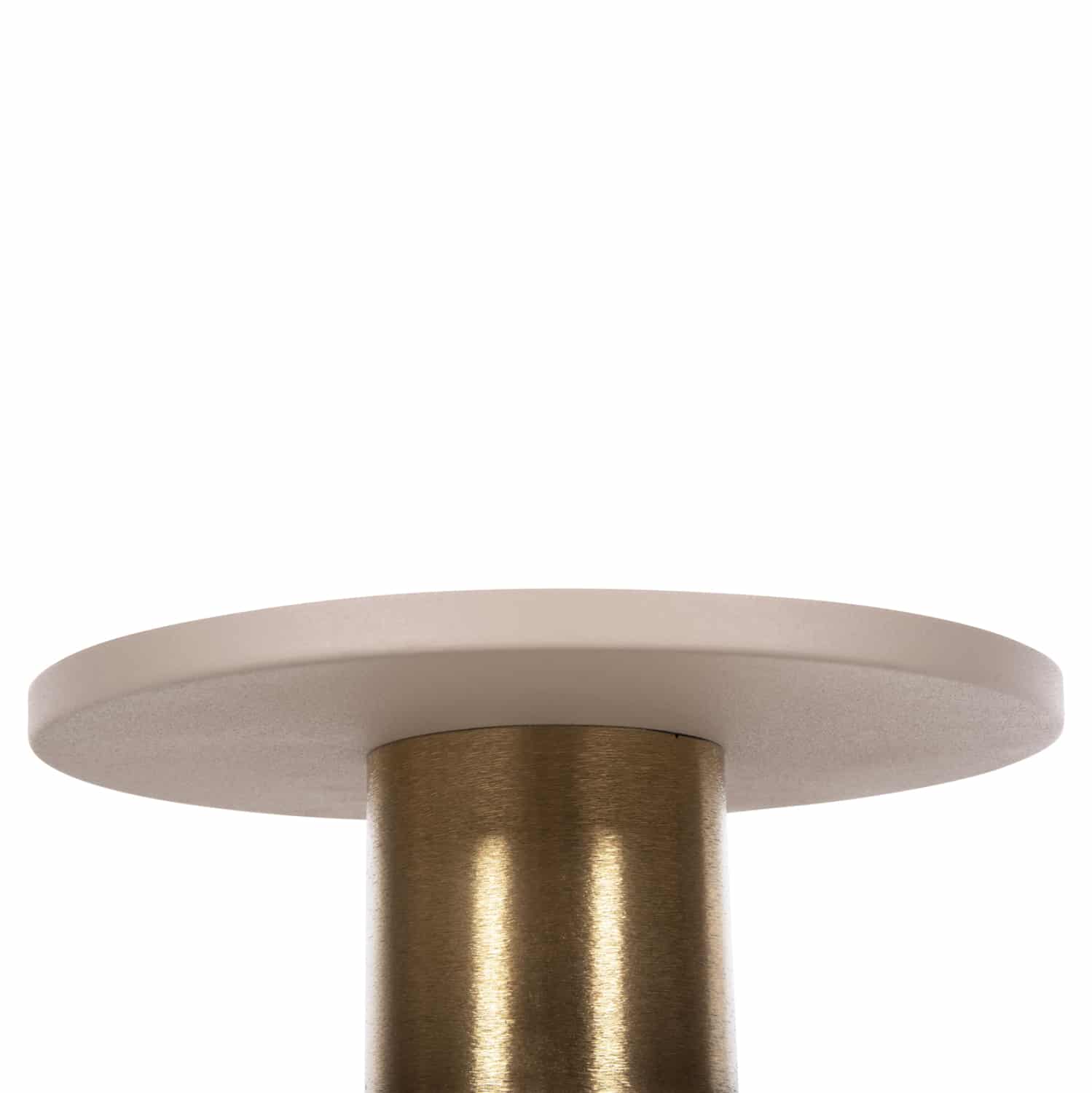 Το βοηθητικό τραπεζάκι PUNJAB για το σαλόνι είναι μια από τις νέες προσθήκες στην γκάμα μας. Πρόκειται για ένα τραπεζάκι στρογγυλό με κυλινδρική βάση και μεταλλικό. Το χρώμα του είναι ΕΚΡΟΥ όπως και η επιφάνεια, ενώ ο «λαιμός» είναι σε χρυσoχάλκινο χρώμα. Η ιδιαιτερότητα αυτού του τραπεζιού είναι οι γυαλιστερές και ματ επιφάνειες που προσδίδουν μια αίσθηση καθαρότητας και πολυτέλειας στο σαλόνι σας, όπως επίσης και ότι η περίμετρος της επιφάνειας είναι υπερυψωμένη και μοιάζει με πιάτο. Ιδανικό τόσο για το σπίτι, όσο και για επαγγελματικούς χώρους.