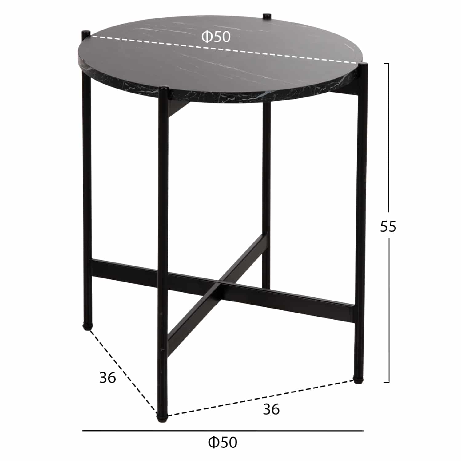 ΒΟΗΘΗΤΙΚΟ ΤΡΑΠΕΖΙ HM9589.01 MDF ΜΑΥΡΟ ΜΑΡΜΑΡΟ-ΜΑΥΡΗ ΜΕΤΑΛΛΙΚΗ ΒΑΣΗ Φ50×55Υεκ. HM9589.01