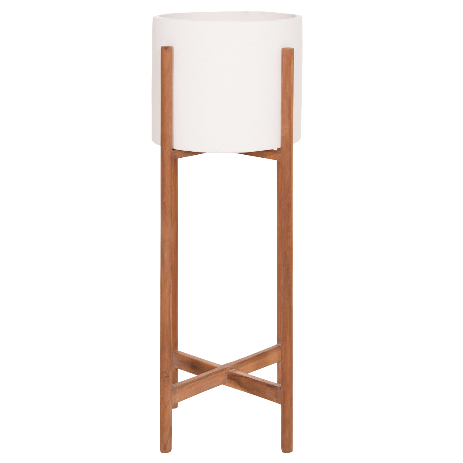 Η γλάστρα εσωτερικού χώρου (κασπό) RENTIL είναι κατασκευασμένη από Fiber Cement σε ΛΕΥΚΟ χρώμα. Το ιδιαίτερο χαρακτηριστικό της είναι ότι συνοδεύεται και τοποθετείται σε μια ψηλή χιαστί βάση από ξύλο teak. Συνιστάται η τοποθέτηση εσωτερικού δοχείου εάν πρόκειται να την χρησιμοποιήσετε με νερό!