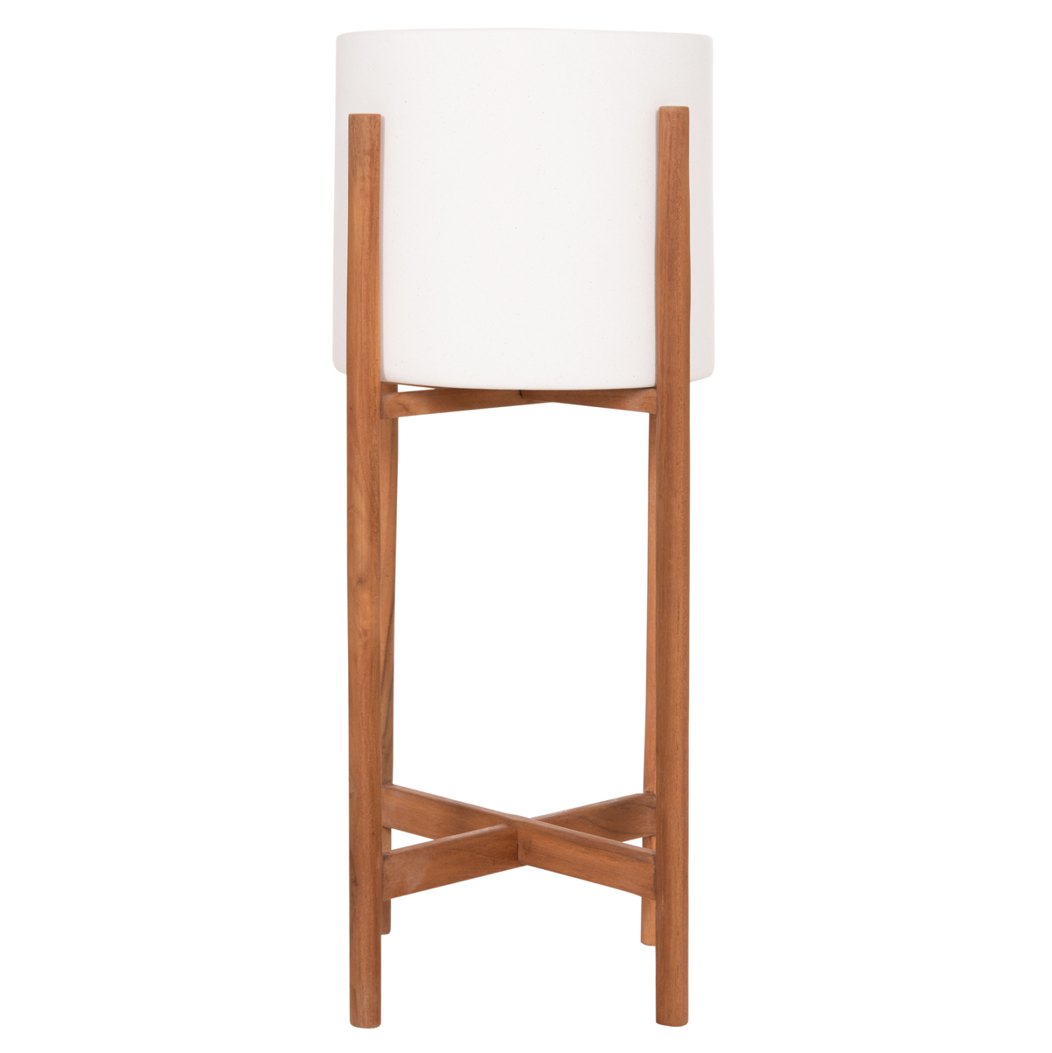 Η γλάστρα εσωτερικού χώρου (κασπό) RENTIL είναι κατασκευασμένη από Fiber Cement σε ΛΕΥΚΟ χρώμα. Το ιδιαίτερο χαρακτηριστικό της είναι ότι συνοδεύεται και τοποθετείται σε μια μεσαίου ύψους χιαστί βάση από ξύλο teak. Συνιστάται η τοποθέτηση εσωτερικού δοχείου εάν πρόκειται να την χρησιμοποιήσετε με νερό!