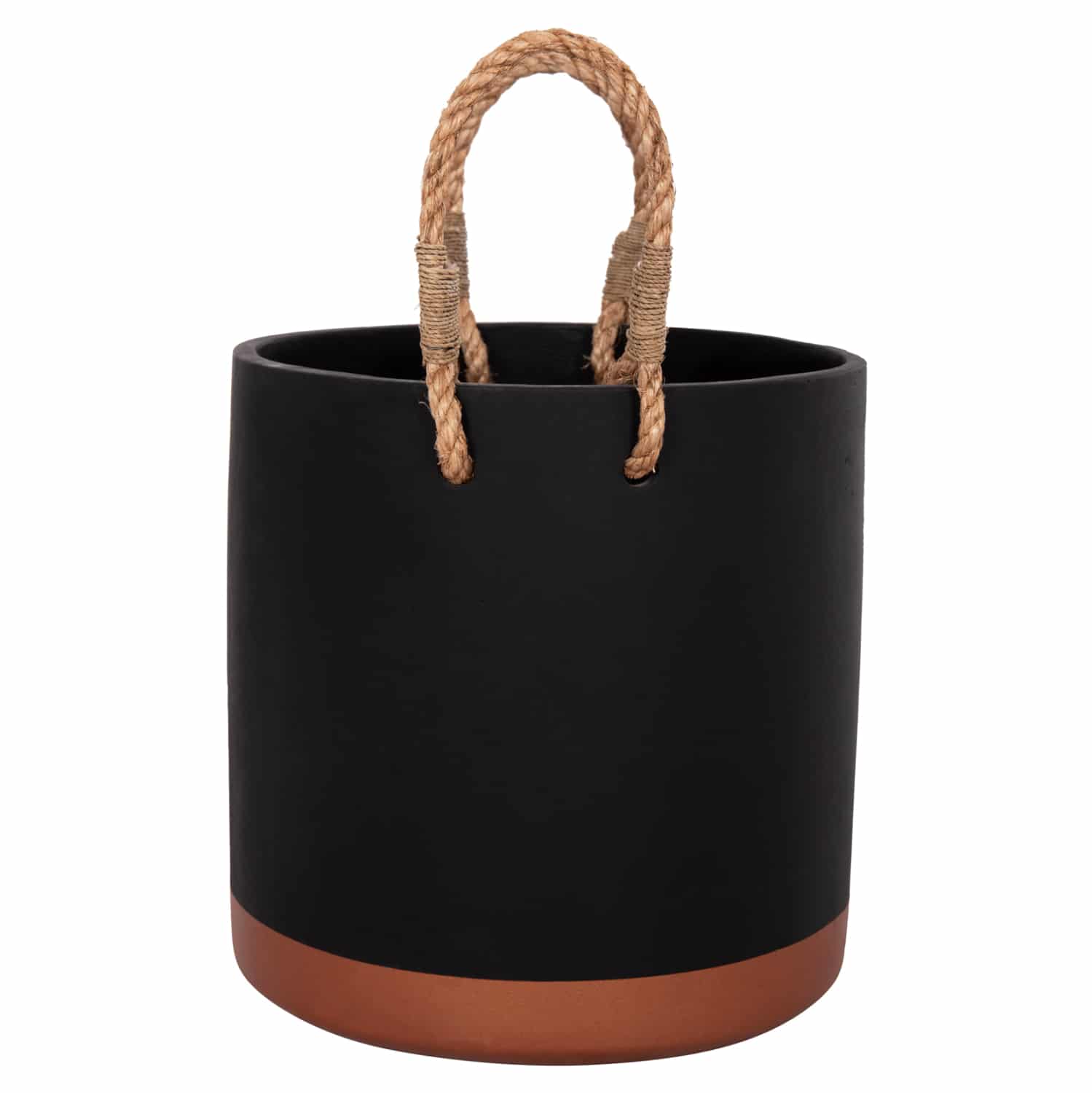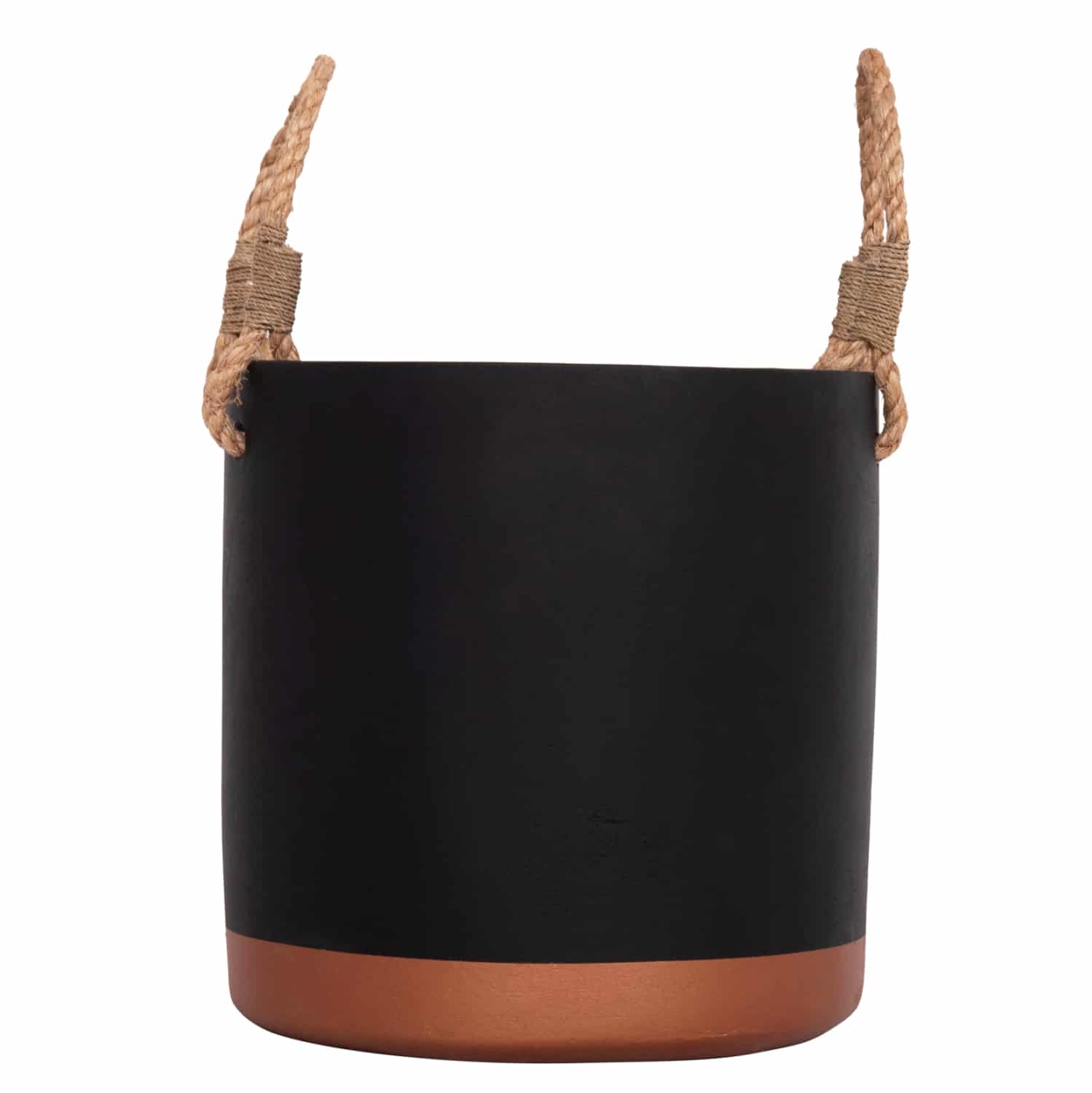 Η γλάστρα της σειράς TRYLL είναι κατασκευασμένη από Fiber Cement σε ΜΑΥΡΟ χρώμα με ΜΠΡΟΝΖΕ περίγραμμα βάσης. Το ιδιαίτερο χαρακτηριστικό της είναι ότι διαθέτουν χερούλια από ανθεκτικό σχοινί για εύκολη μεταφορά.