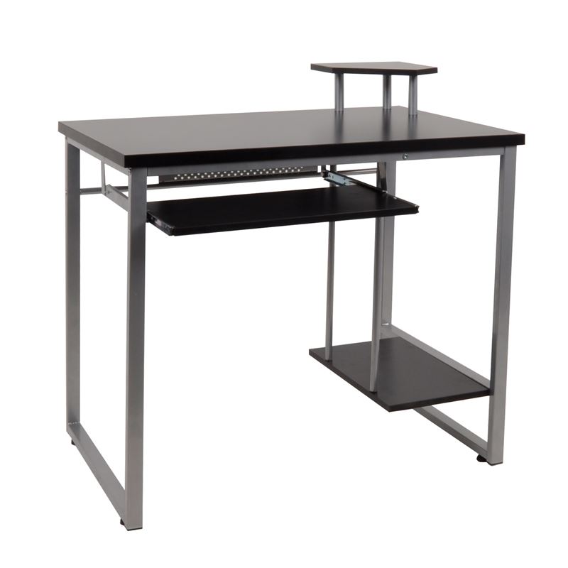ΓΡΑΦΕΙΟ με Βάση Η/Υ και Ράφι Πληκτρολογίου, Μέταλλο Βαφή Silver, MDF απόχρωση Wenge (Ε-00014077)