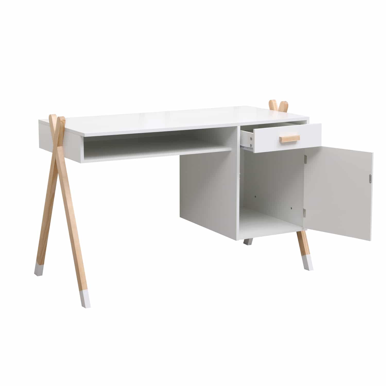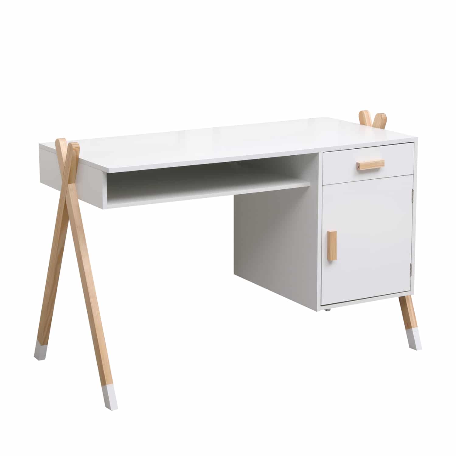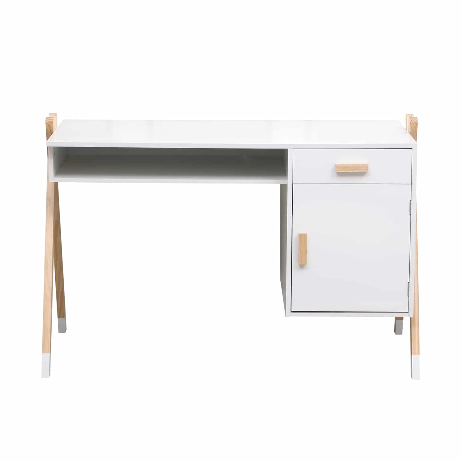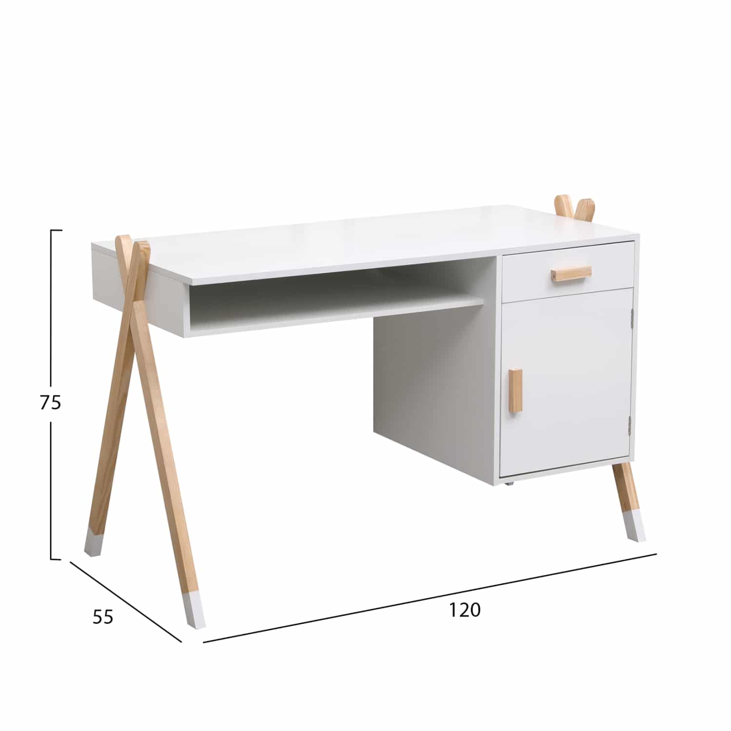 Το νέο παιδικό γραφείο PASCHAL σε ΛΕΥΚΟ χρώμα ήρθε για να αποτελέσει την καλύτερη λύση για το παιδικό δωμάτιο. Είναι βολικό σε διαστάσεις και διαθέτει έναν ανοιχτό αποθηκευτικό χώρο, ένα συρτάρι κι ένα ντουλαπάκι. Στηρίζεται σε δύο ξύλινα χιαστί πόδια σε ΦΥΣΙΚΟ χρώμα ξύλου στις δύο πλευρές. Είναι βαμμένο με αβλαβές μη τοξικό βερνίκι με βάση το νερό, ιδανικό για παιδιά.
