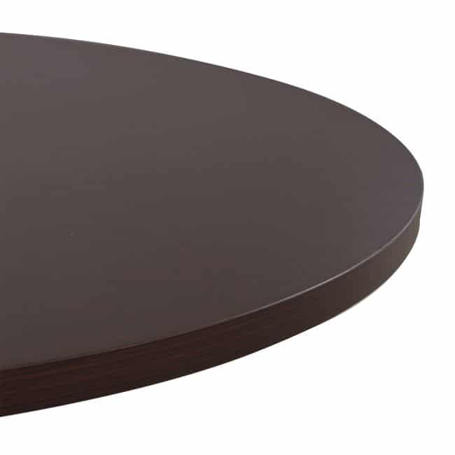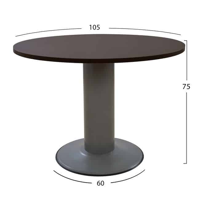 Επαγγελματικό γραφείο συνεδριάσεων με στρόγγυλη επιφάνεια, κατασκευασμένο από ανθεκτική μελαμίνη σε wenge απόχρωση και μεταλλική βάση σε γκρι απόχρωση.