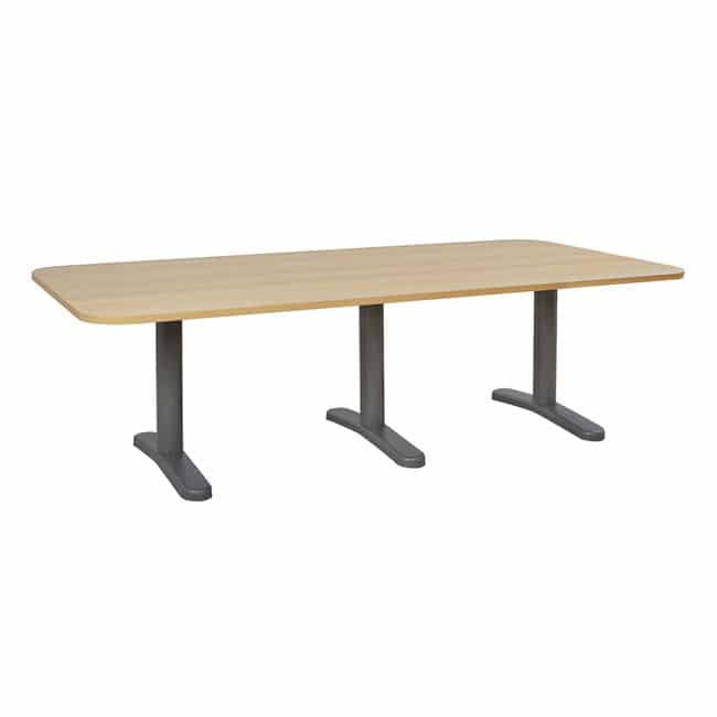 Επαγγελματικό γραφείο συνεδριάσεων, κατασκευασμένο από ανθεκτική μελαμίνη σε απόχρωση οξιάς και μεταλλικά πόδια σε γκρι απόχρωση.
