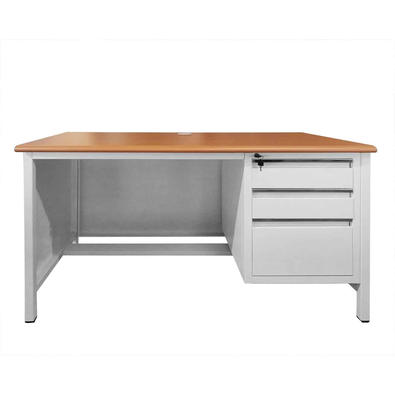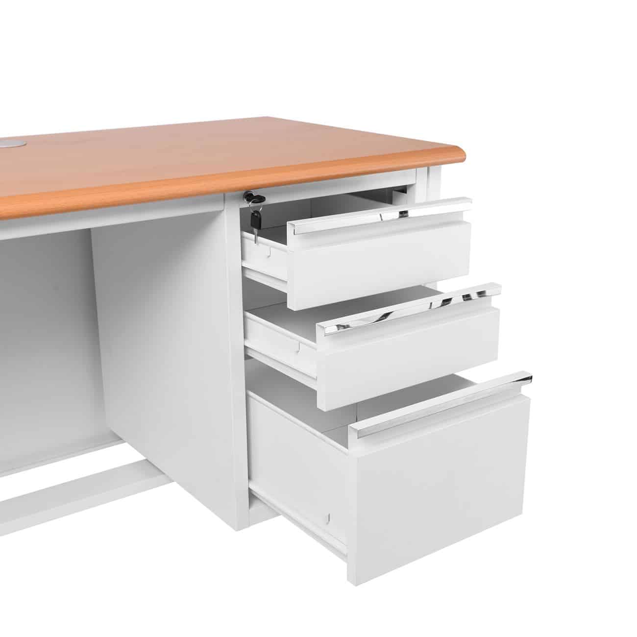 ΓΡΑΦΕΙΟ 3-Συρτάρια, Μέταλλο Βαφή Άσπρο, Επιφάνεια Απόχρωση Maple (Ε-00025166)