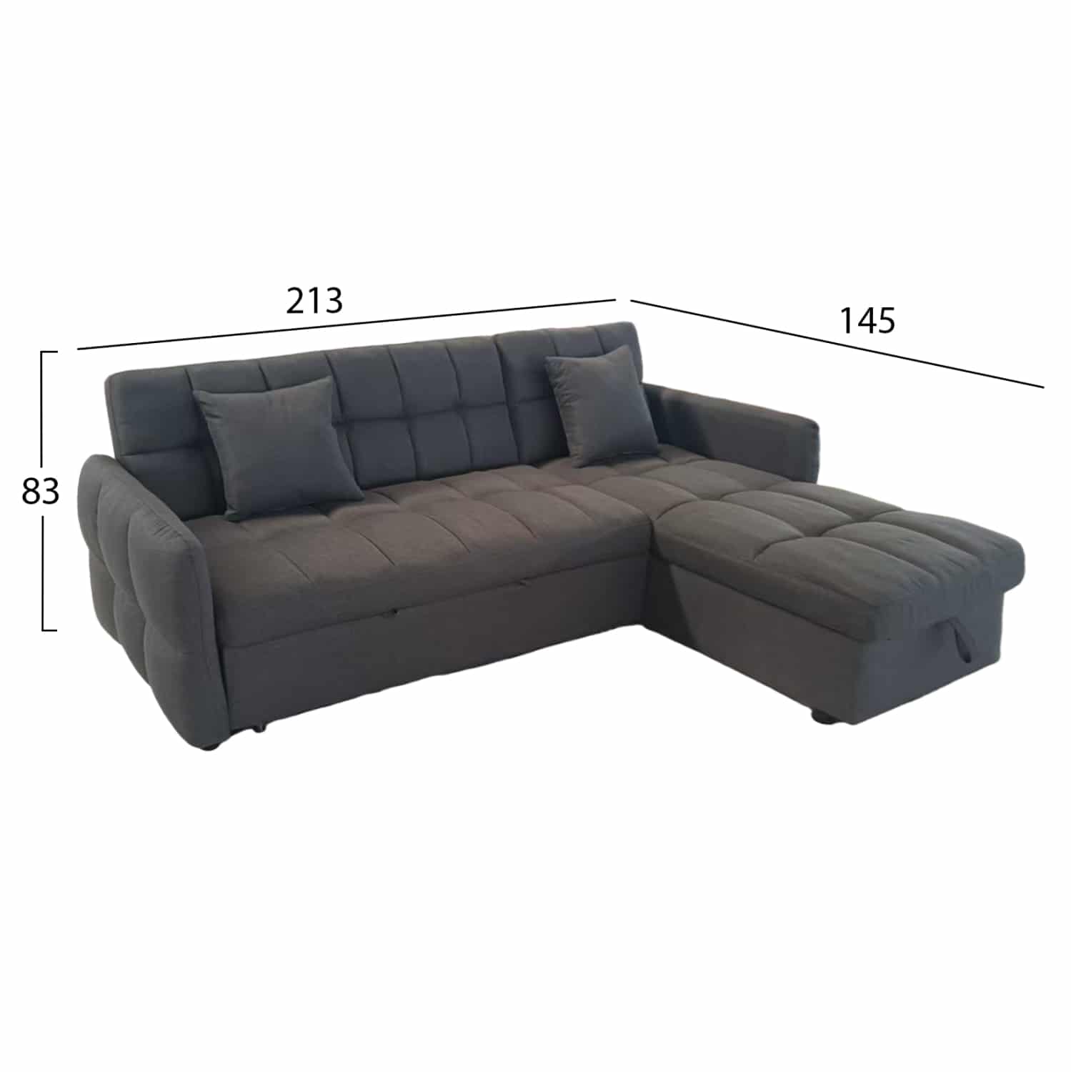 ΓΩΝΙΑΚΟΣ ΚΑΝΑΠΕΣ-ΚΡΕΒΑΤΙ ΑΝΑΣΤΡΕΨΙΜΟΣ NEZU HM3294.01 ΓΚΡΙ ΥΦΑΣΜΑ 213x145x83Υεκ. HM3294.01