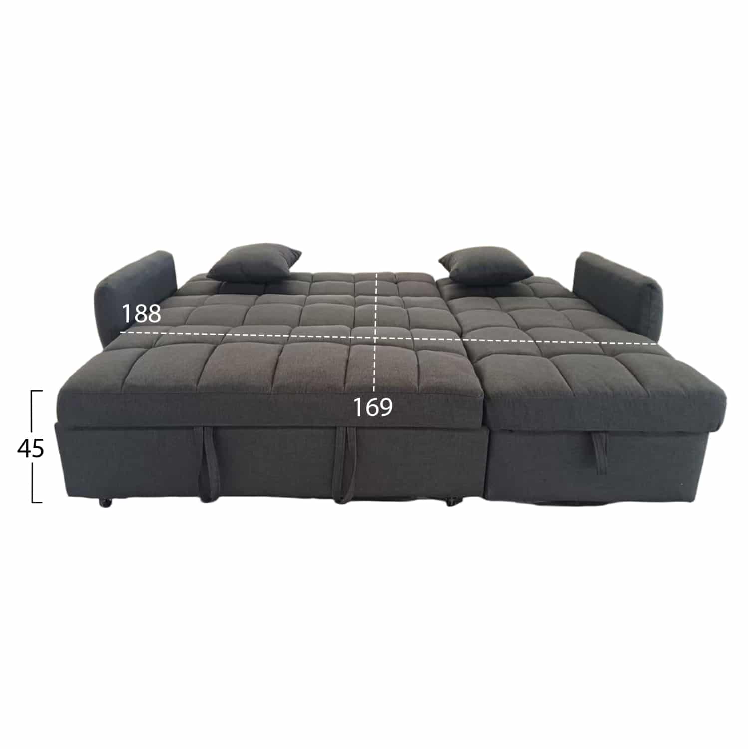 ΓΩΝΙΑΚΟΣ ΚΑΝΑΠΕΣ-ΚΡΕΒΑΤΙ ΑΝΑΣΤΡΕΨΙΜΟΣ NEZU HM3294.01 ΓΚΡΙ ΥΦΑΣΜΑ 213x145x83Υεκ.