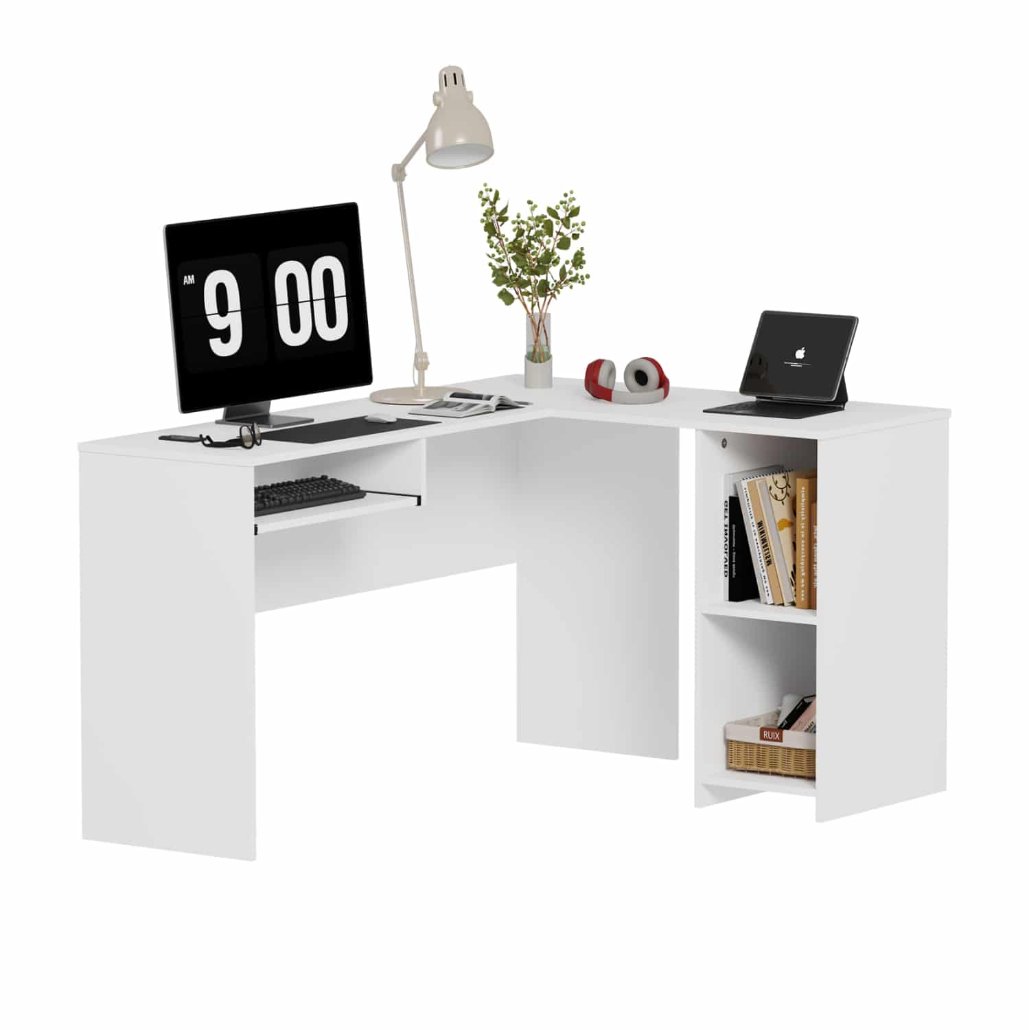 Το γωνιακό γραφείο SHIG σε έντονο ΛΕΥΚΟ χρώμα είναι μια ποιοτική και όμορφη πρόταση για κάθε χώρο εργασίας. Η γωνία σχηματίζεται δεξιά και διαθέτει συρόμενο ραφάκι για τοποθέτηση πληκτρολογίου Η/Υ στην μία πλευρά, ενώ στην πλευρά της γωνίας υπάρχουν 2 ράφια για να τοποθετείτε τα πιο χρήσιμα αντικείμενά σας. Εσείς απλά επιλέξτε μια ταιριαστή καρέκλα γραφείου και φτιάξτε το γραφείο σας όπως το ονειρεύεστε.