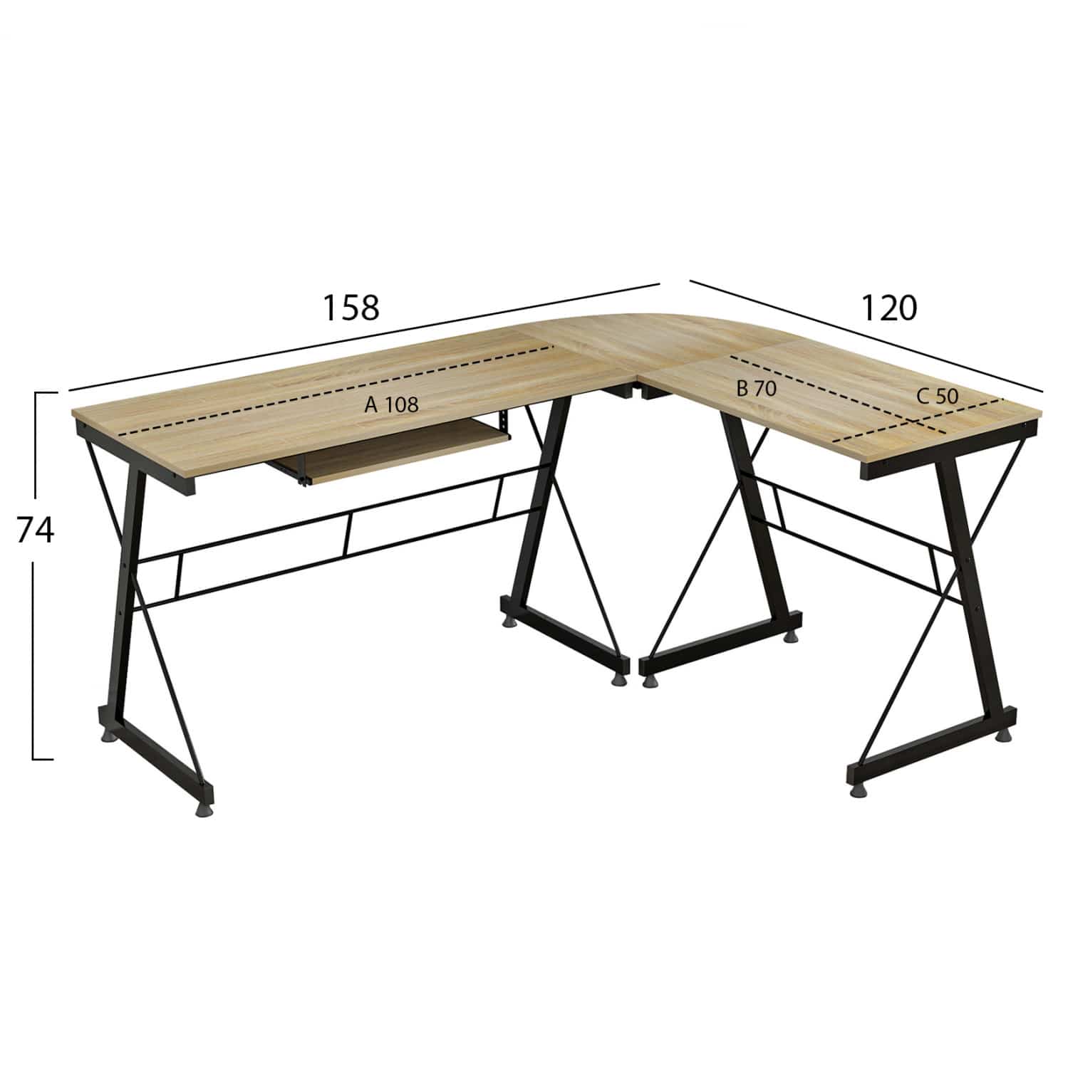 ΓΩΝΙΑΚΟ ΓΡΑΦΕΙΟ SONAMA ΕΠΙΦΑΝΕΙΑ ΜΕ ΜΕΤΑΛΛΙΚΟ ΣΚΕΛΕΤΟ HM2127.01 158Χ120Χ74εκ. HM2127.01