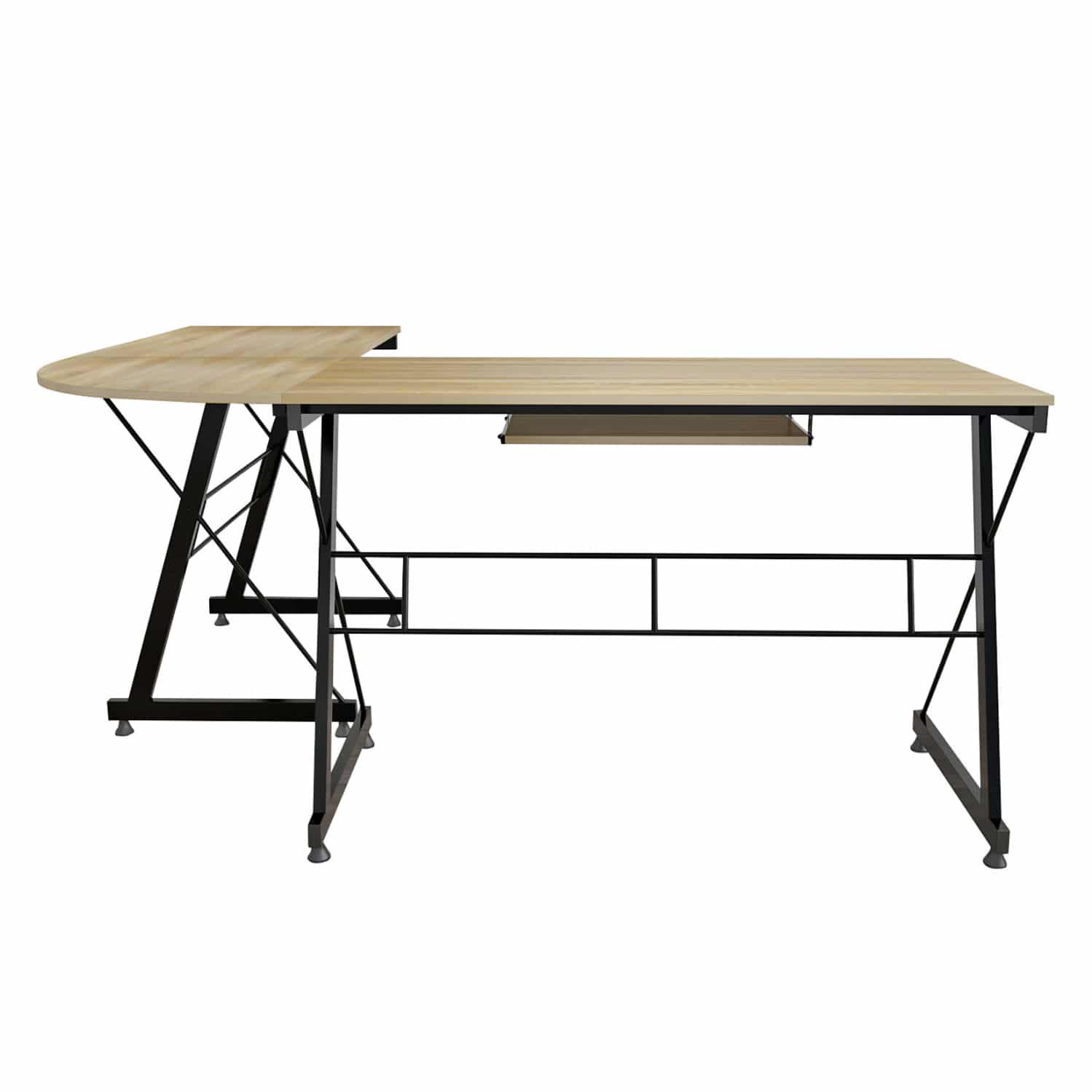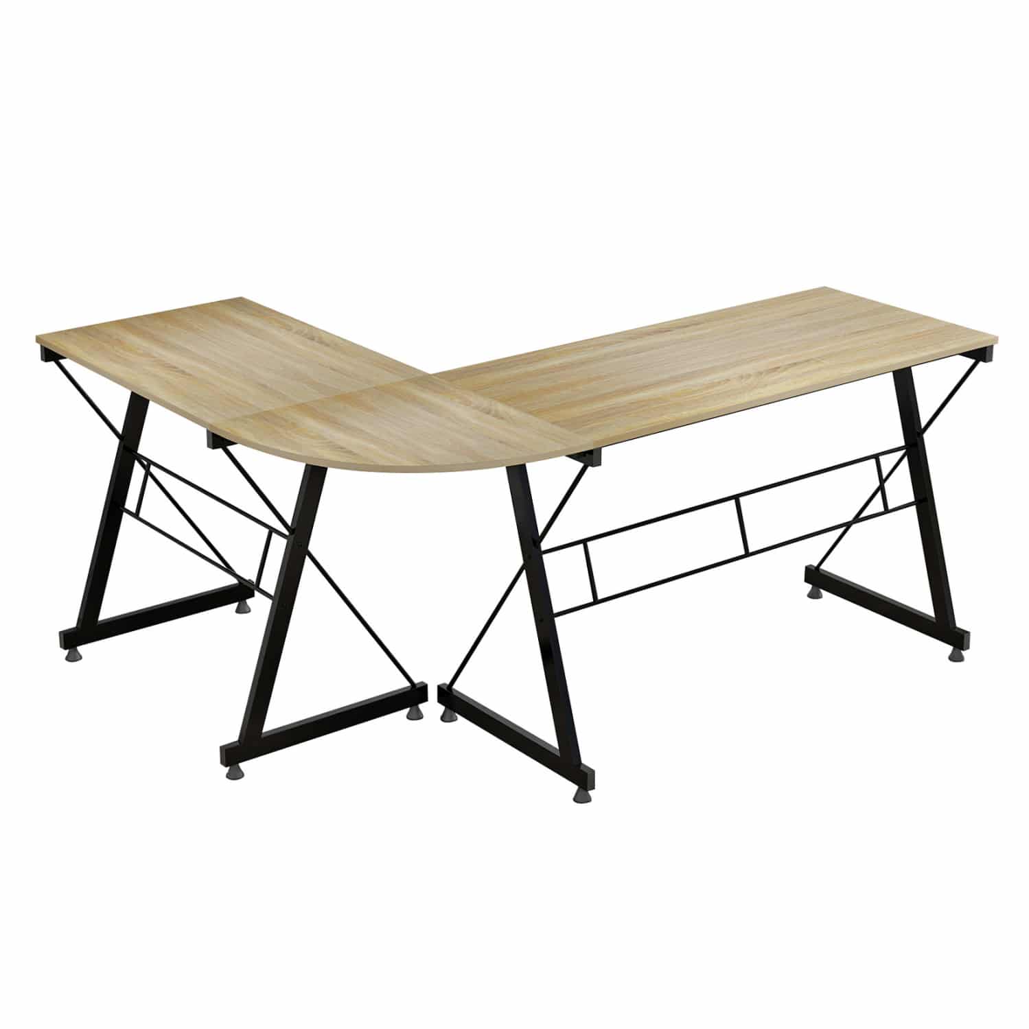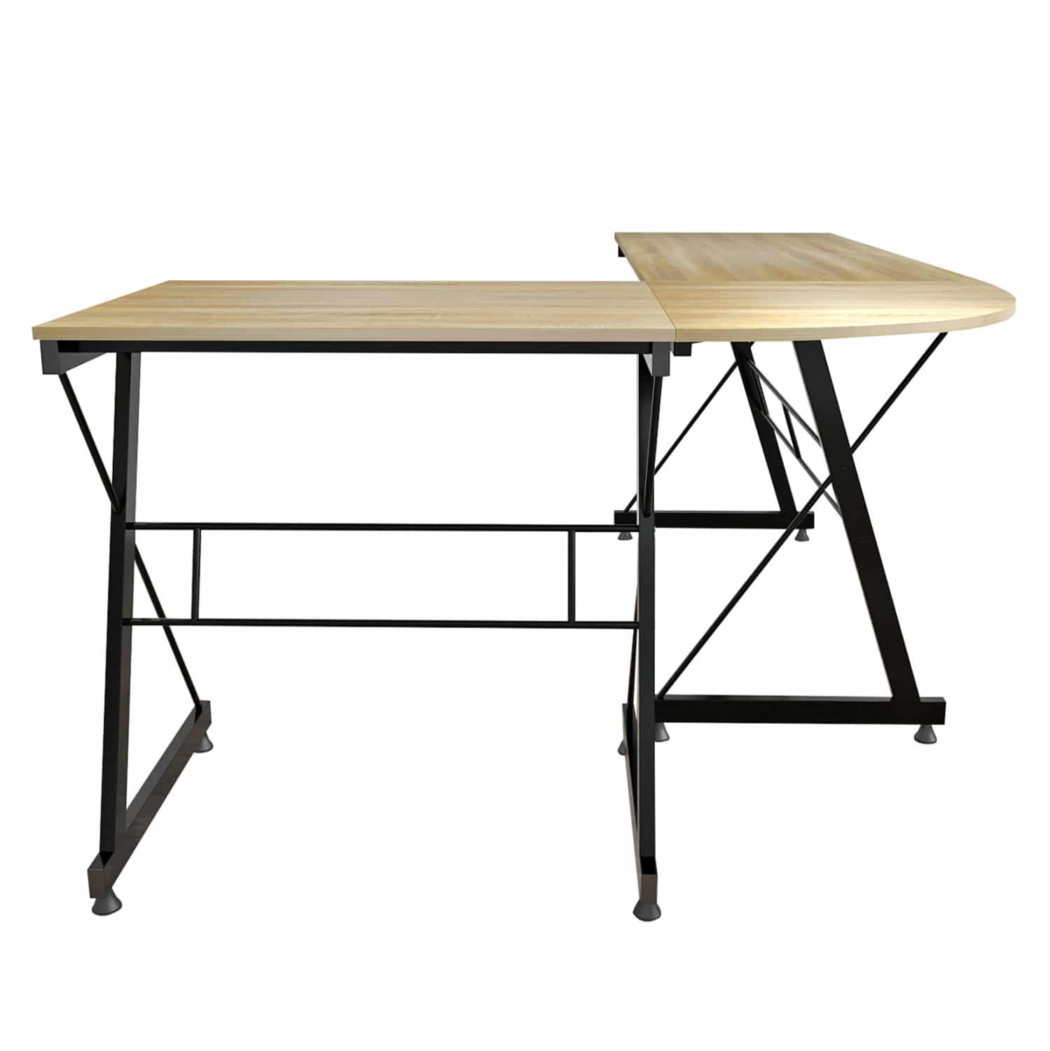 Γραφείο γωνία με κομψό και λιτό σχεδιασμό, κατασκευασμένο από ανθεκτική μελαμίνη γωνία σε απόχρωση sonama με μεταλλικό μαύρο σκελετό.